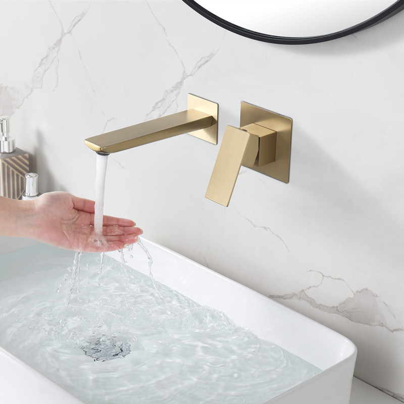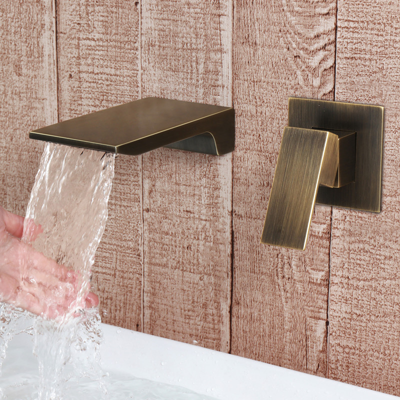 YEFG factory simple in-wall hot and cold waterfall water concealed washbasin basin hand basin full copper tap