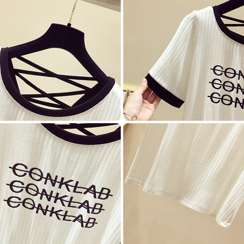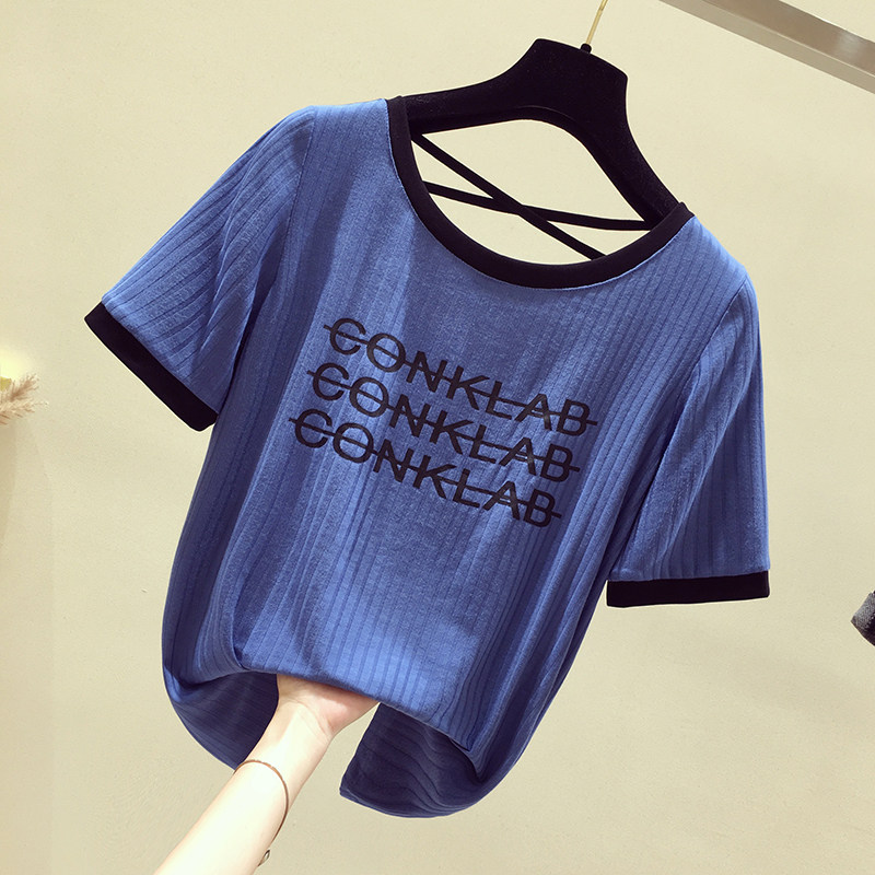 Korean Bull Oil Fruits Green Ice Silk Short Sleeves Women 2020 Xia's new loose Han version Heart Machine Reveal Back T-shirt Short blouses