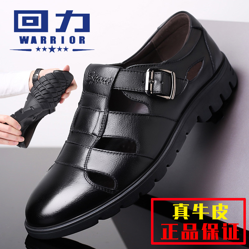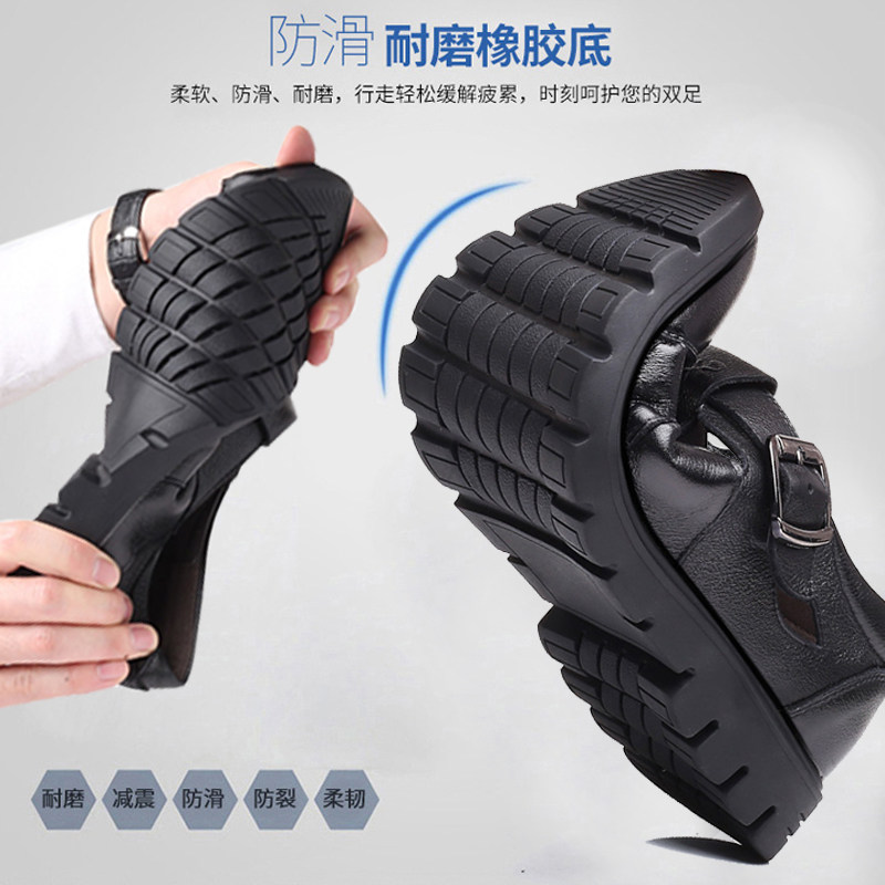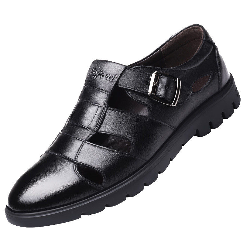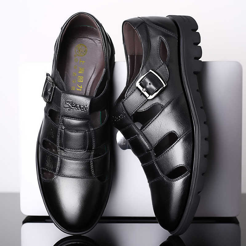 Back Force Men's Cool Shoes Men's Leather Summer Hollowed-out Air Casual Mid-Aged Cool Leather Shoes Man Soft Bottom Dad Shoes
