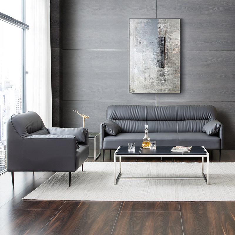 Office Sofa Tea Table Combination Suit Trio Bits Genuine Leather Nordic Minimalist Business Reception Sofa Leisure Brief