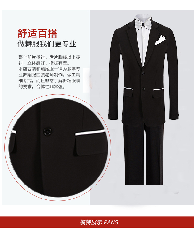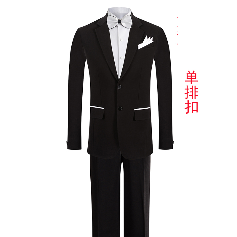 Morden Dance Waltz National Standard Dance Suit Men's Race Suit Performance Suit Import Elastic Single Row Buttoned Flat Refuting Collar Fillet