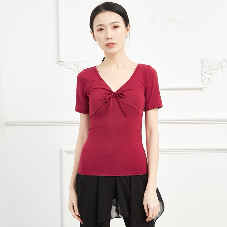 Sashimi V neckline butterfly knot short sleeve Morden Latin dance practice Tight Fit Mid Sleeve Sexy Dancing Blouse Women Big