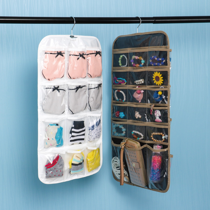 Double-sided underwear storage hanging bag put socks headgear fabric storage bag dormitory hanging wardrobe artifact