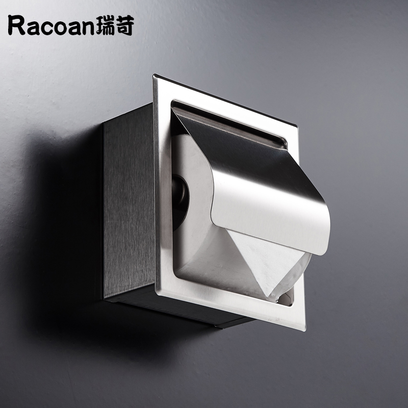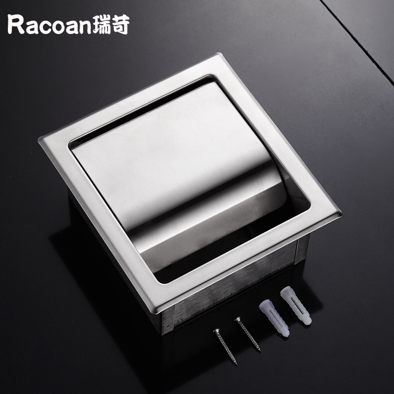 Rui Ke 304 stainless steel hotel concealed sanitary tissue rack in-wall embedded cosmetic room toilet roll sanitary tissue box