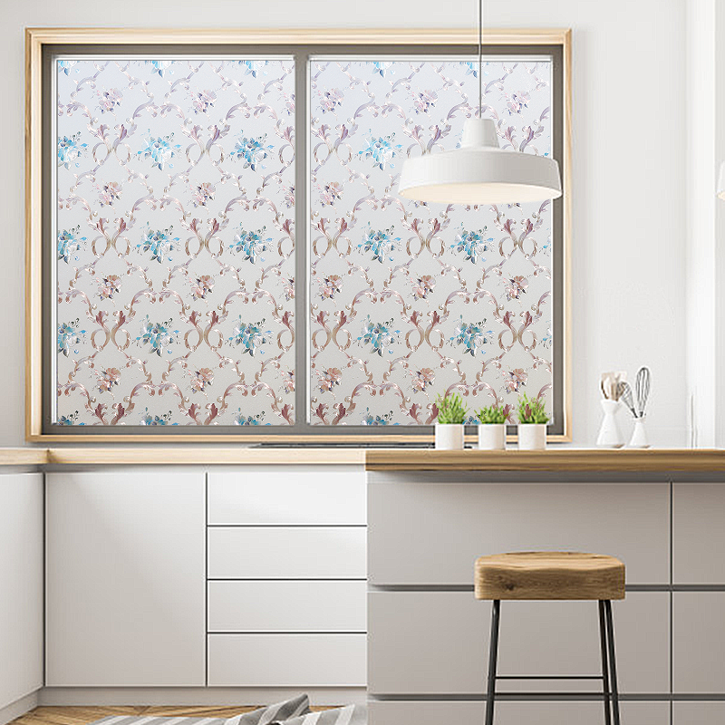 Eurostyle flower gel-free electrostatic mildew-proof and anti-UV glass film sunscreen wool glass