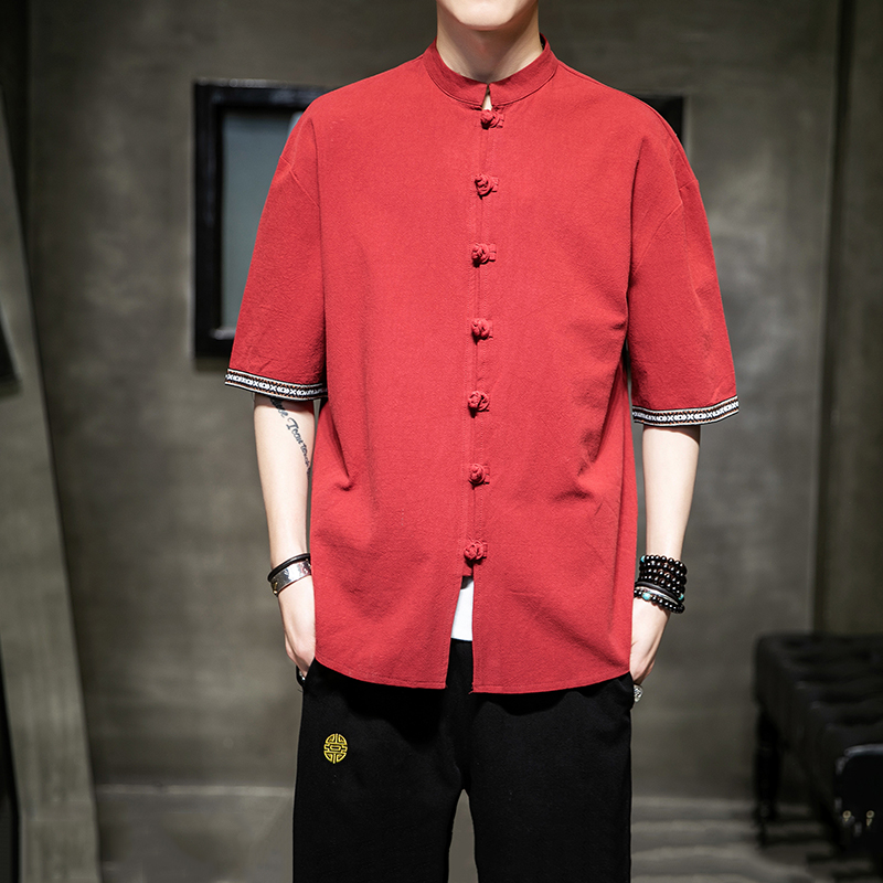 China Wind Men's Clothing Summer Linen Short Sleeve Shirt Male Tang Clothing Young Chinese Pan Buttoned Collar Cotton Linen Jacket Clothing