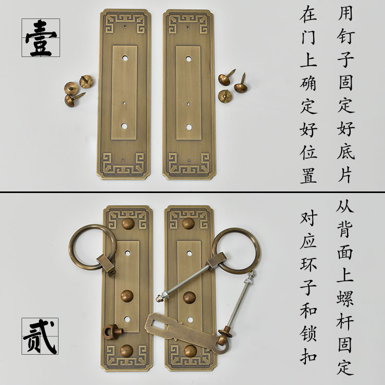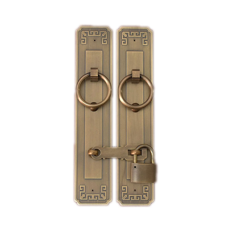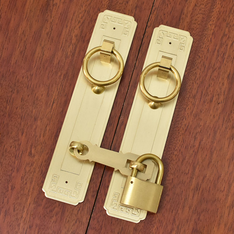 Pure copper handle Chinese imitation antique solid wood door pull ring full copper old cabinet door buckle flower lattice door strip hanging lock catch