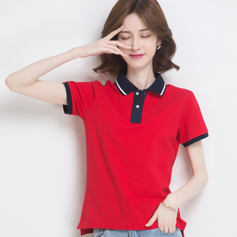 Pure cotton-tied short sleeves custom new summer women dress with T-shirt loose large-code sports polo shirt
