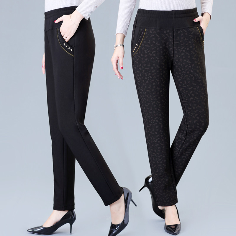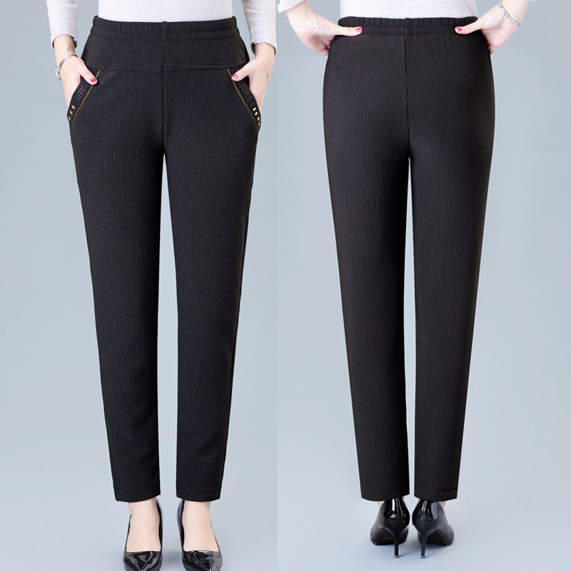 Pure black-spring and autumn long pants vertical stripe-spring and autumn long pants with broken pattern-spring and autumn long pants rain-point grain-spring-autumn long pants pure black (winter-style and velvety) vertical stripes (winter-style and velvet) broken flower pattern (