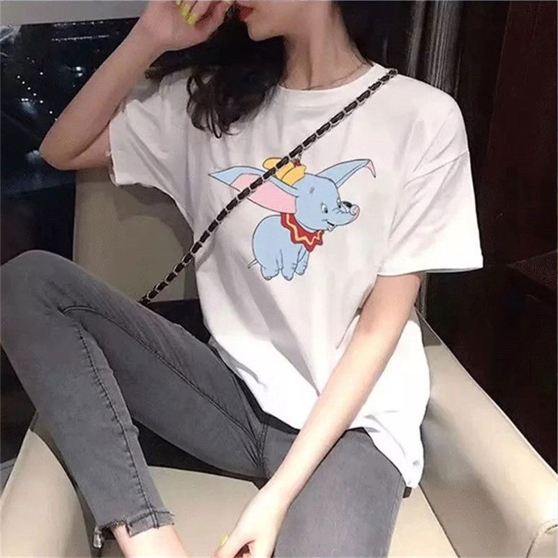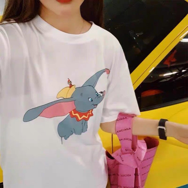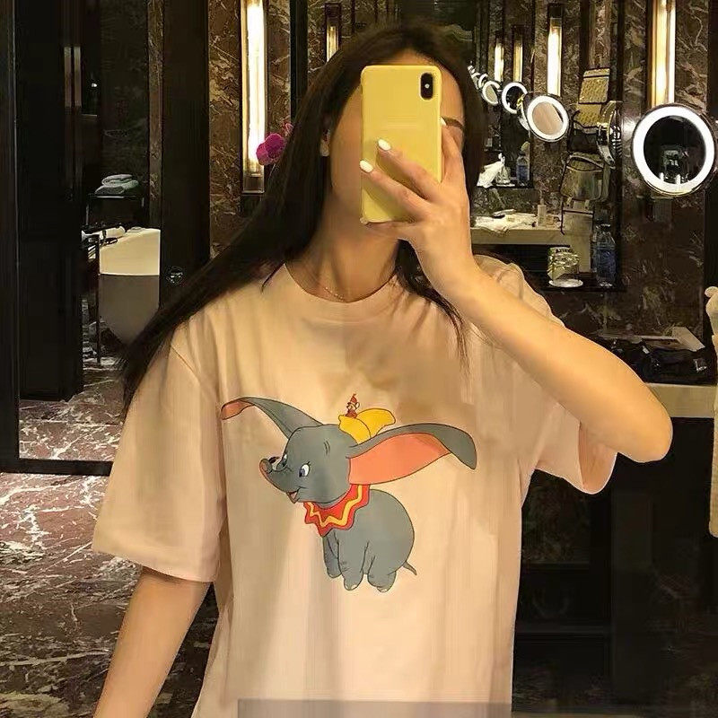 Korean trendy star with the same style pink Dumbo printed T-shirt women's pure cotton loose short-sleeved men and women couple net red