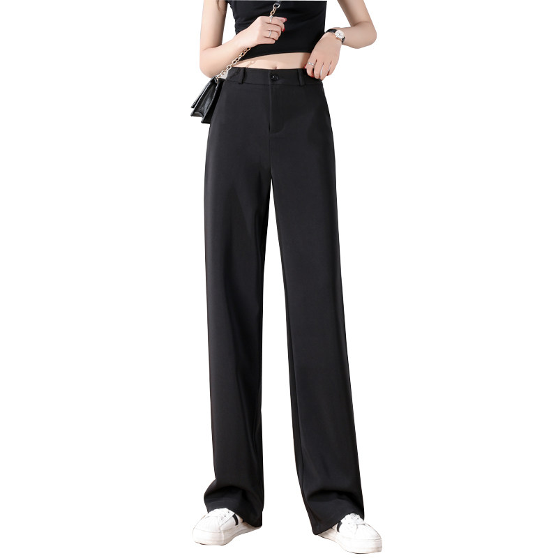 Suit pants women's straight tube loose drape summer small tall waist was thin spring and autumn black pendant wide leg mopping pants