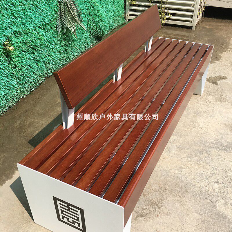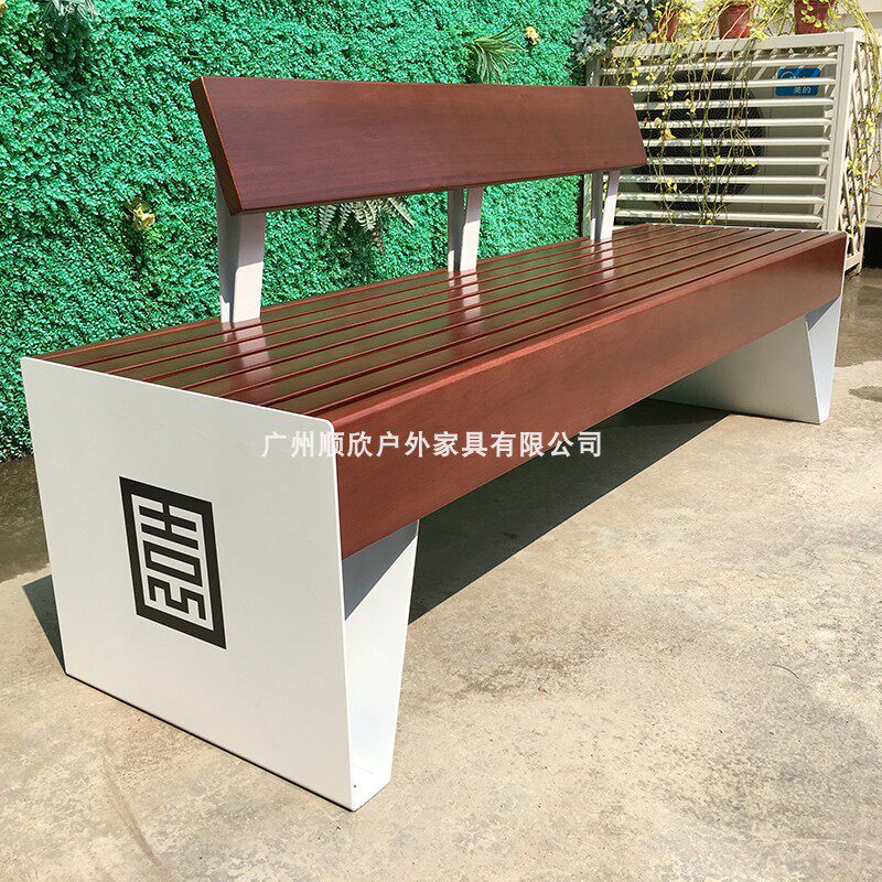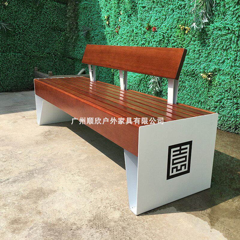Custom backrest park chair Wrought iron outdoor anti-corrosion leisure bench Iron chair Double solid wood balcony courtyard bench