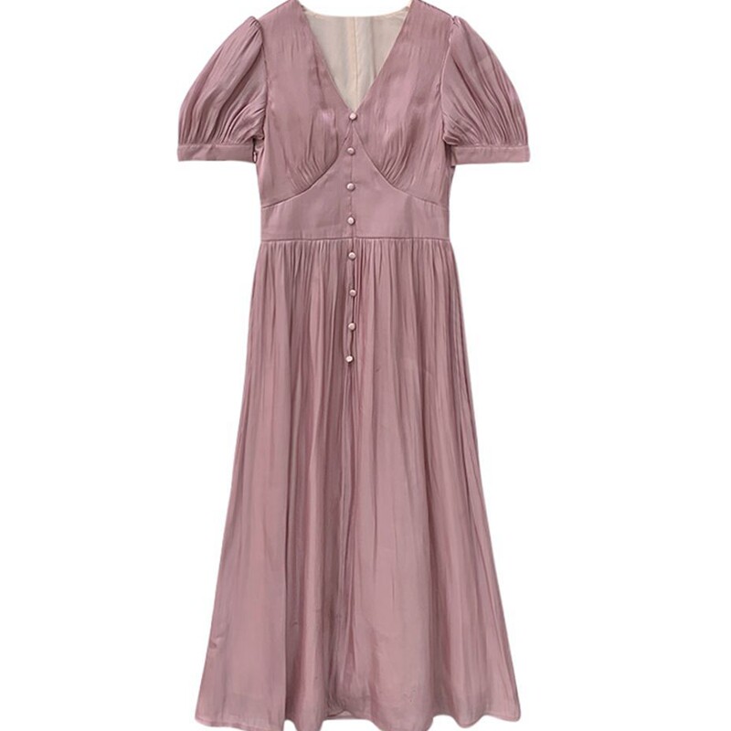 Fa-style first love Balloon Fairy Skirt Spring And Summer New Sens take a knee V collar to collect waist display slim temperament foreign dress