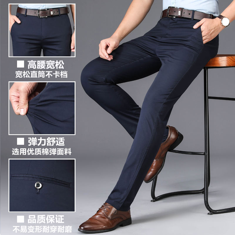 Autumn middle-aged men's casual pants men's loose straight tube autumn and winter summer thin black suit pants men's pants