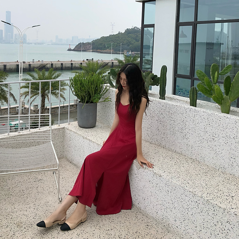 Light-ripened wind Sexy cross-dew back harness Lie dress Women's summer dress 2023 new workout length Temperament Long Skirt-Taobao
