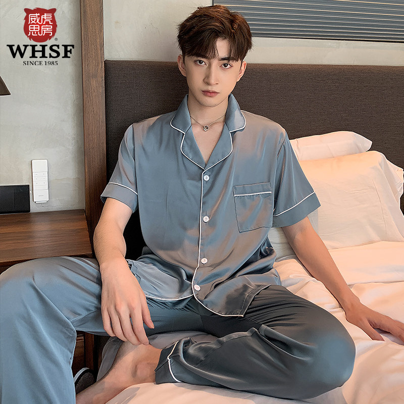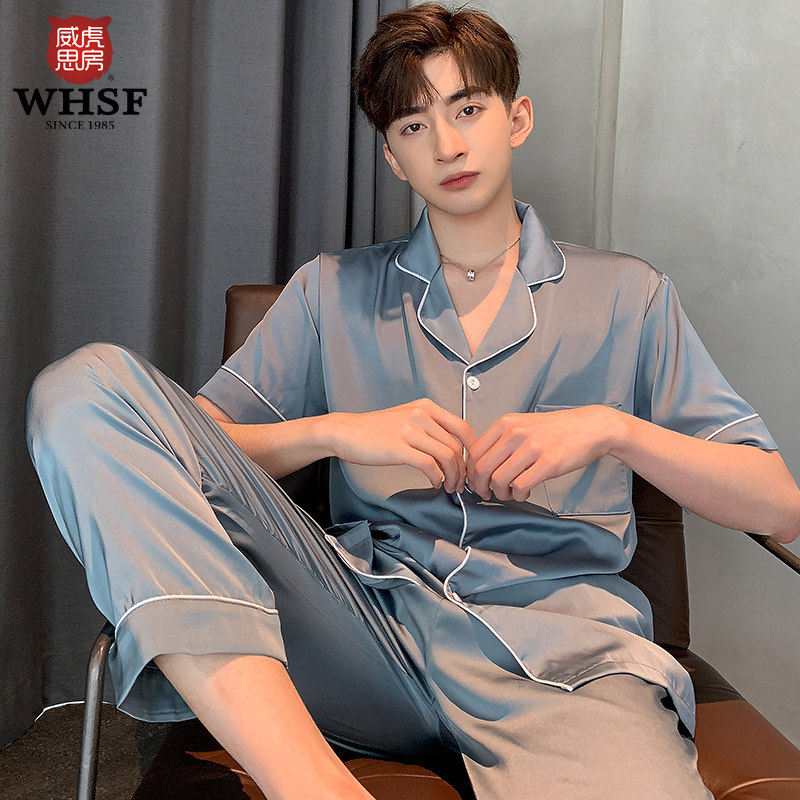 Sleepwear Men's Summer Thin Ice Silk Minimalist Pure Color Teen Cute Korean Version Silk Big Size Home Suit Suit