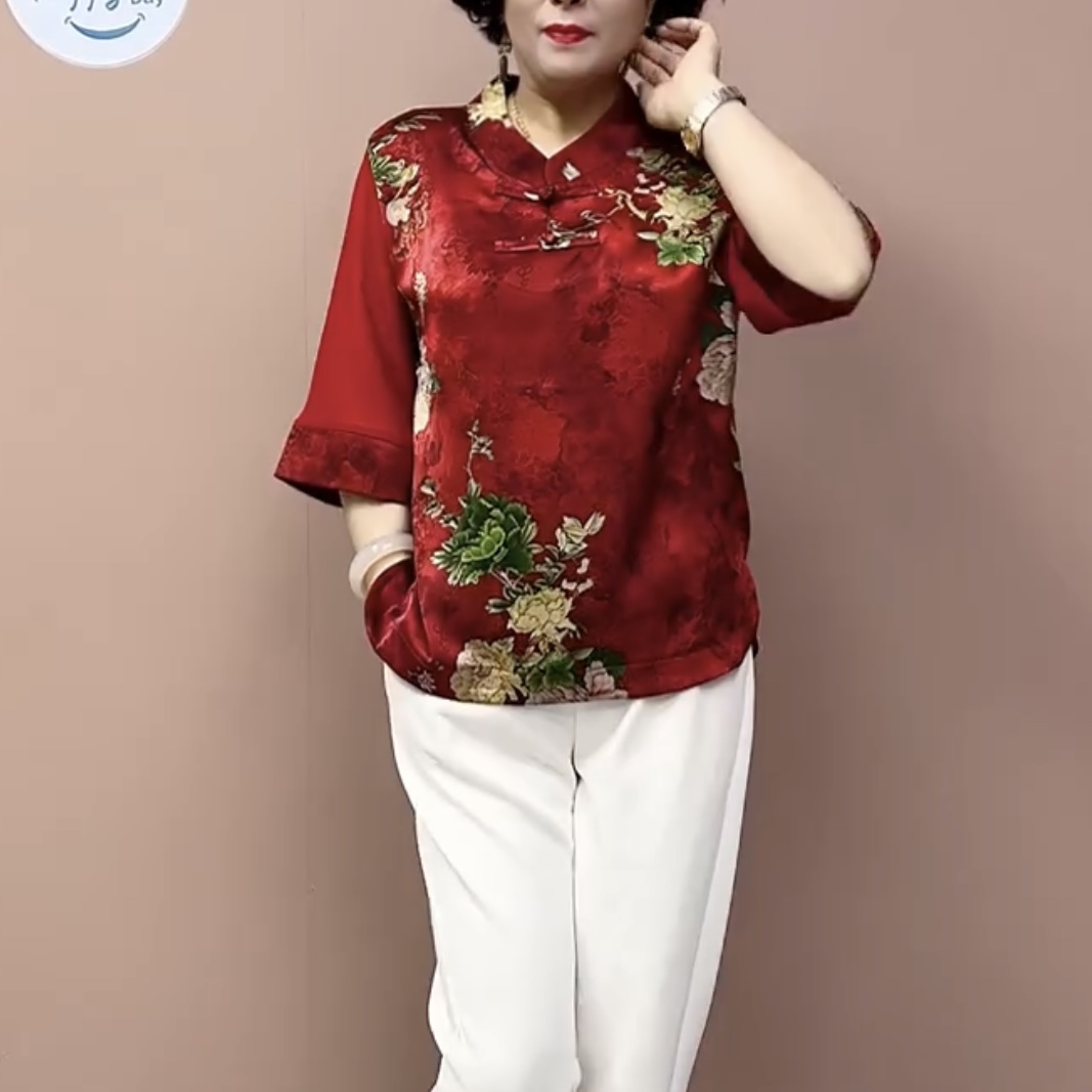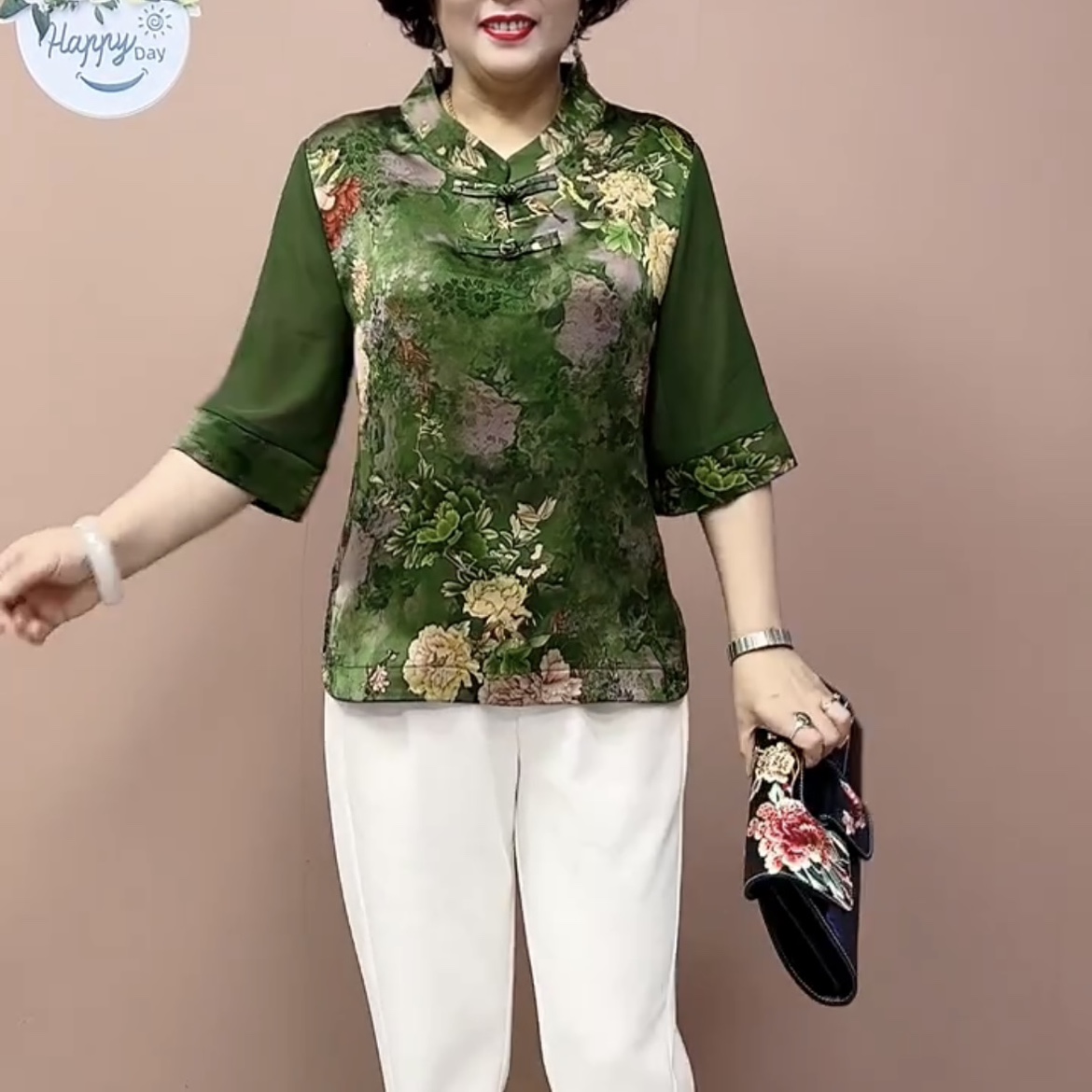 Summer New Fashion Mom Fashion Mom Fashion Fat Sister Loose Skin Satin Costume