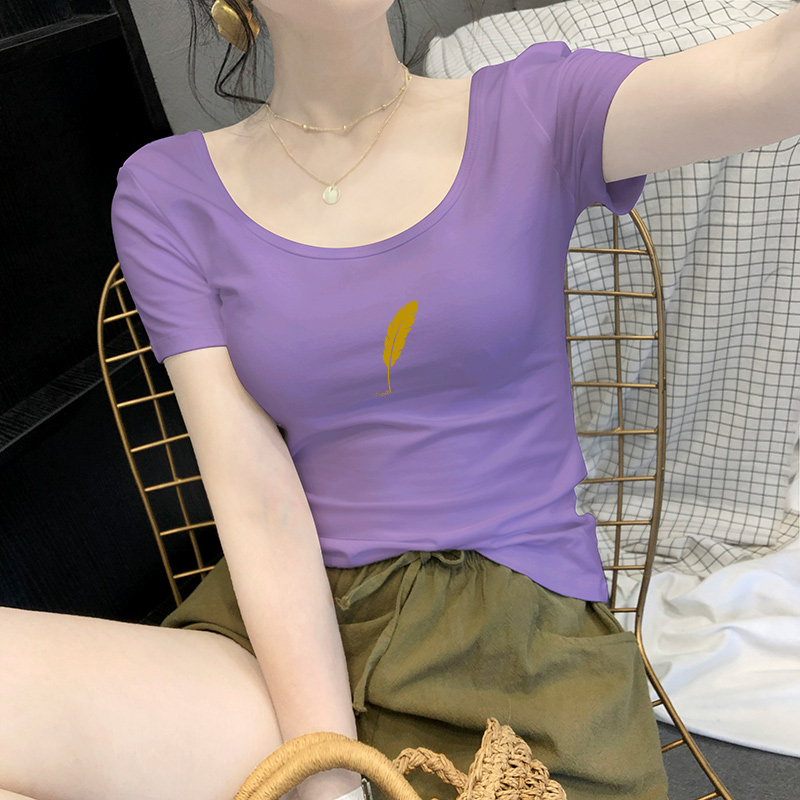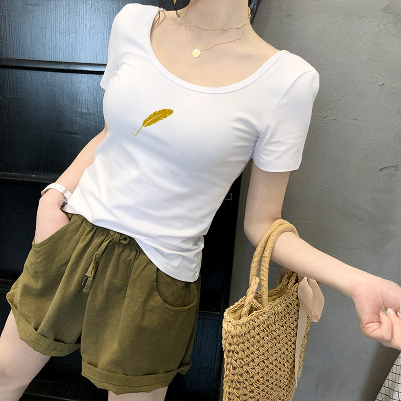 White T-shirt short sleeve low-collar tight tights U-collar cotton-Korean edition slim, big collar half-sleeved, half-sleeved