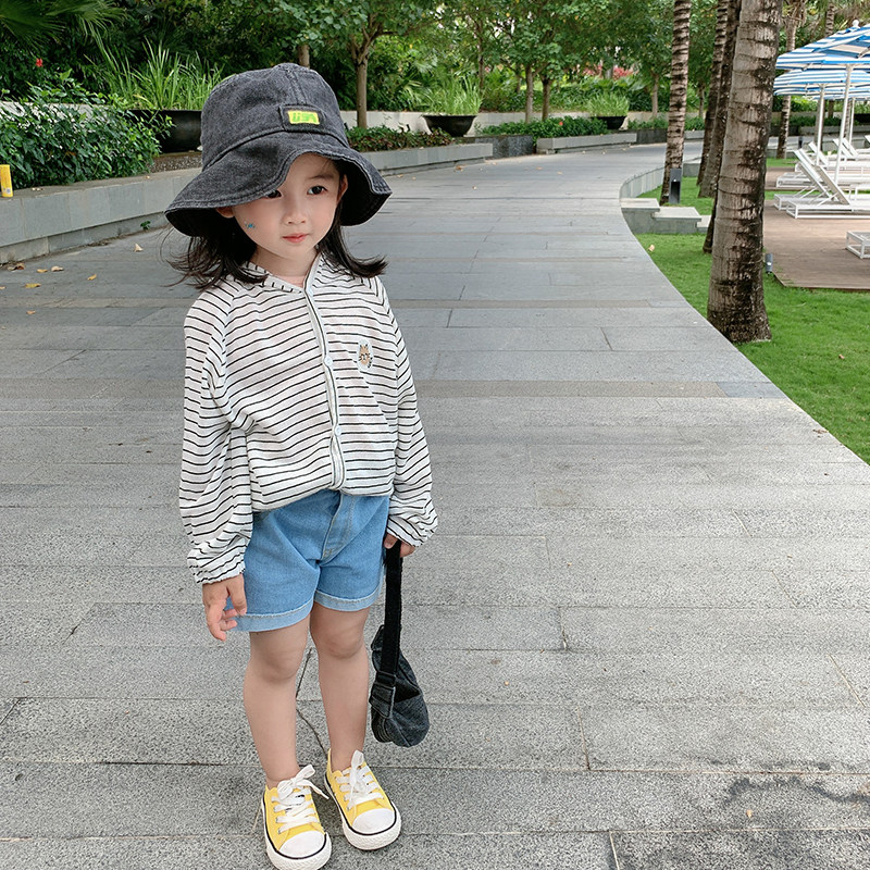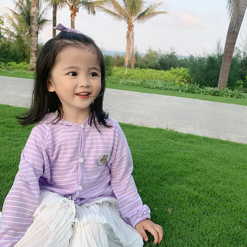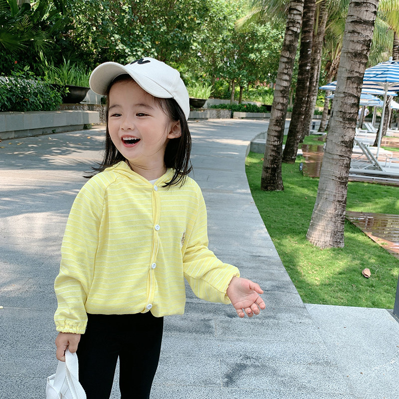 Yang Mei Home Children's clothes 2022 Summer clothes new girl Lianhood sunscreen clothing Baby Striped Striped 100 lap jacket