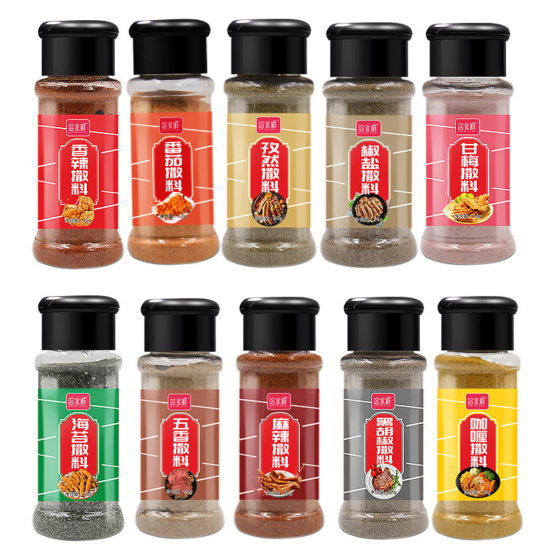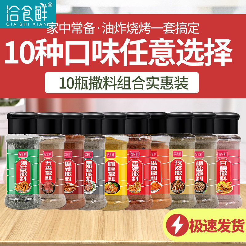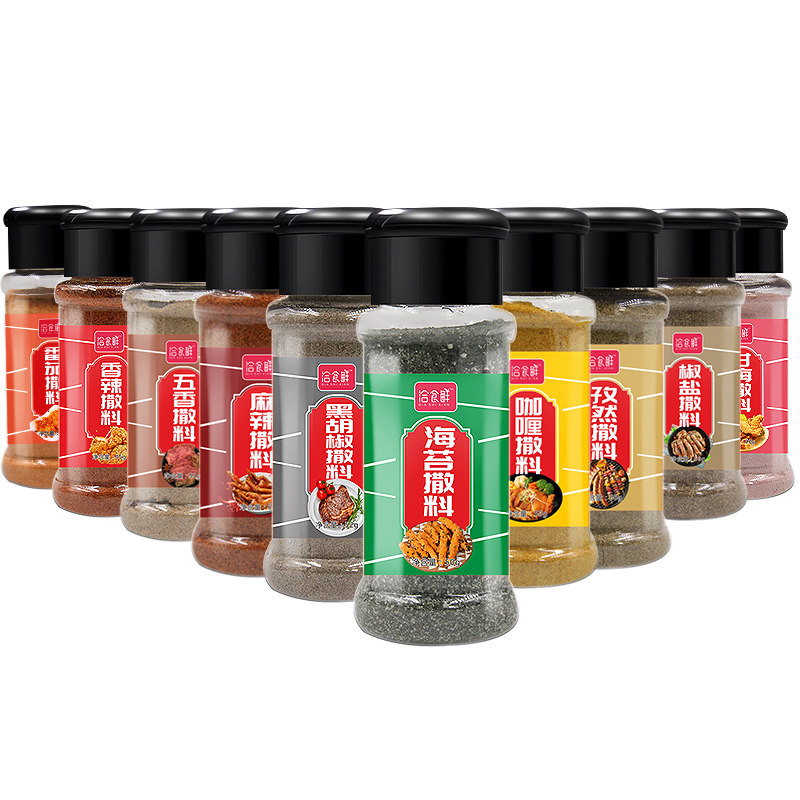10 pieces of potato chip combination sprinkles, sweetmeat powder, tomato sprinkles, spicy sprinkles, salt and pepper sprinkles, cumin sprinkles, spicy sprinkles, spiced sprinkles, black pepper sprinkles, curry sprinkles, seaweed sprinkles