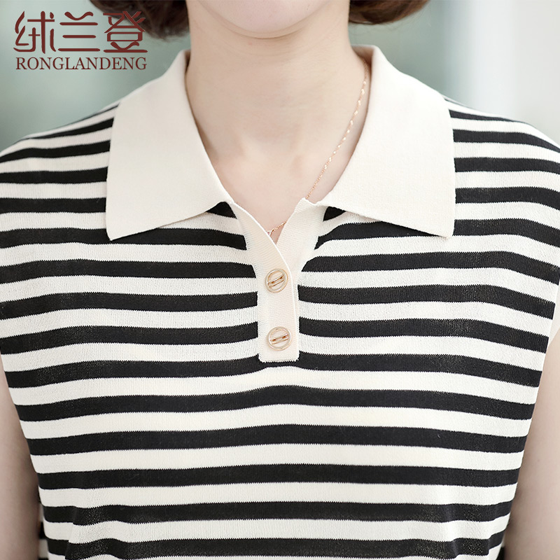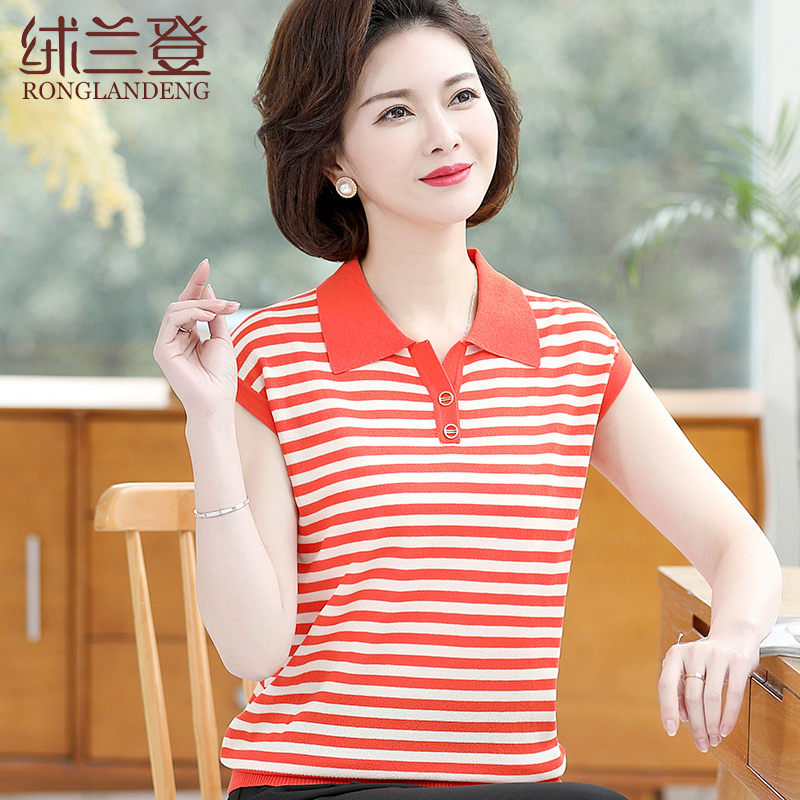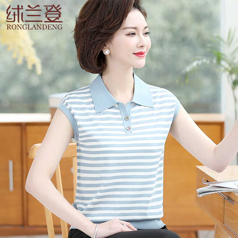 Mother summer fit short sleeve T-shirt female Jane about 40 50 years old woman in summer turning over knitted short sleeve blouse