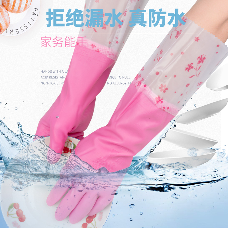 Chunlei 900 dishwashing gloves women do housework cleaning waterproof rubber latex durable kitchen with velvet brush bowl