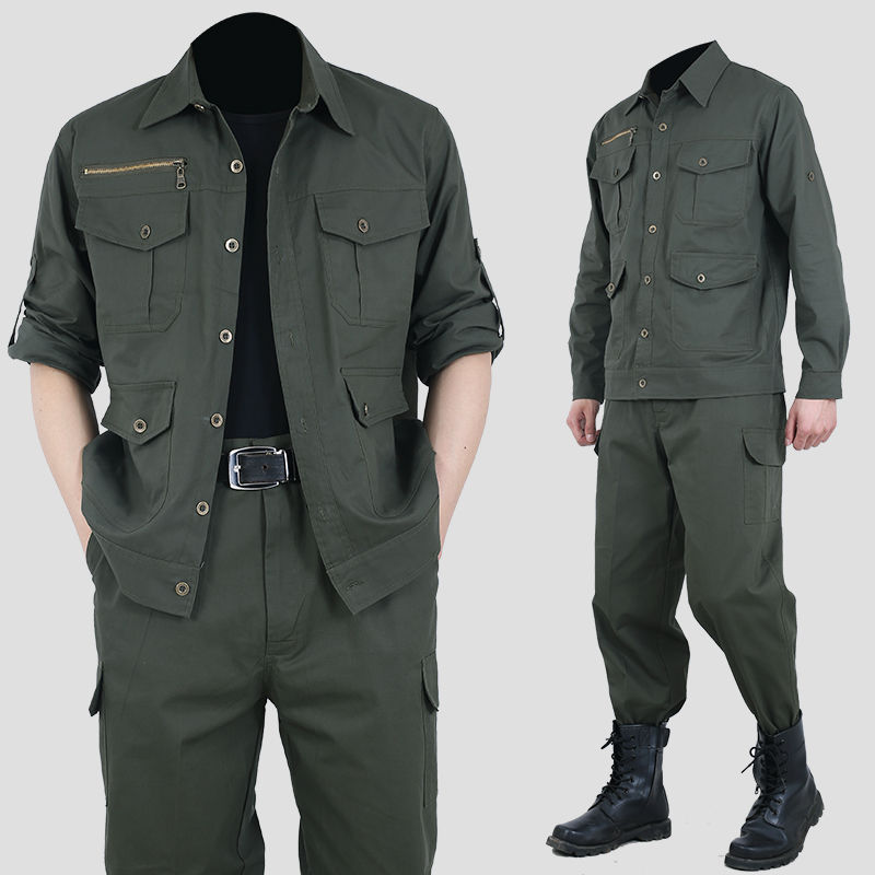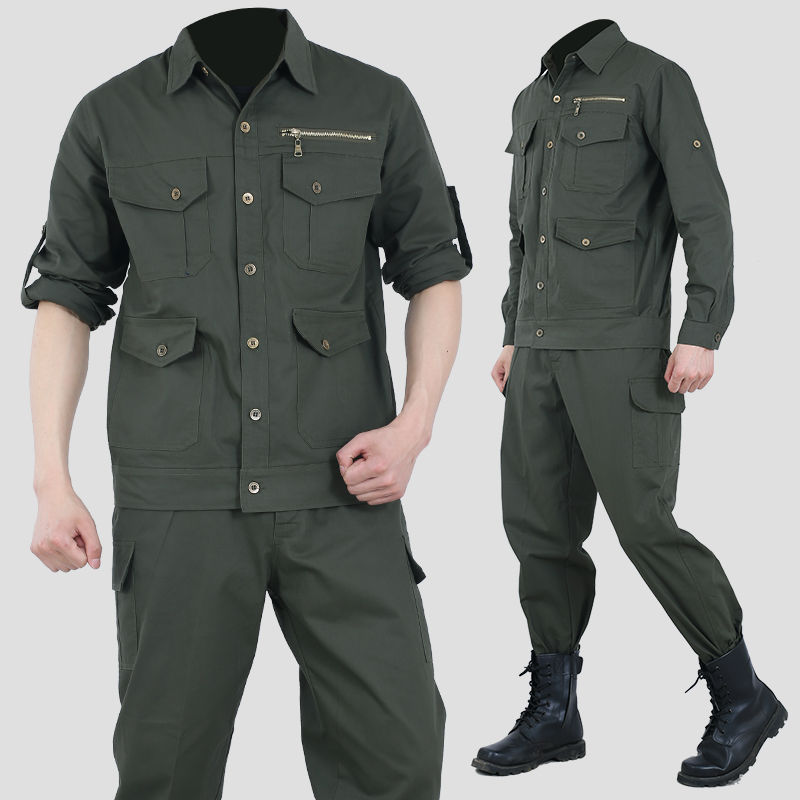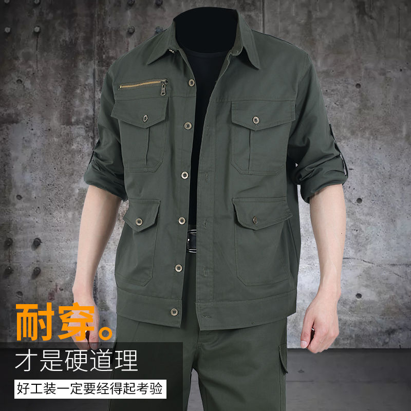 Work clothes suit men's summer thin cotton fabric work clothes wear-resistant sweat-absorbing outdoor labor protection work
