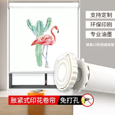 Printed roller blinds, punch-free installation of curtains, bedroom, kitchen, powder room, office, waterproof shading, lifting hand-pulled curtains