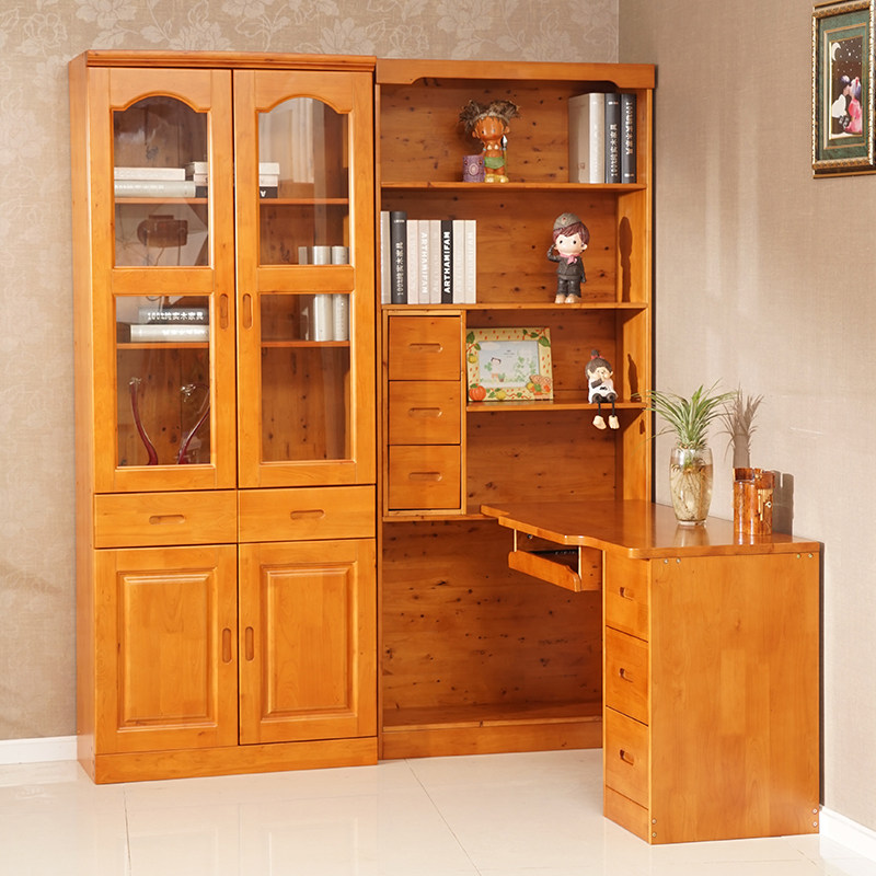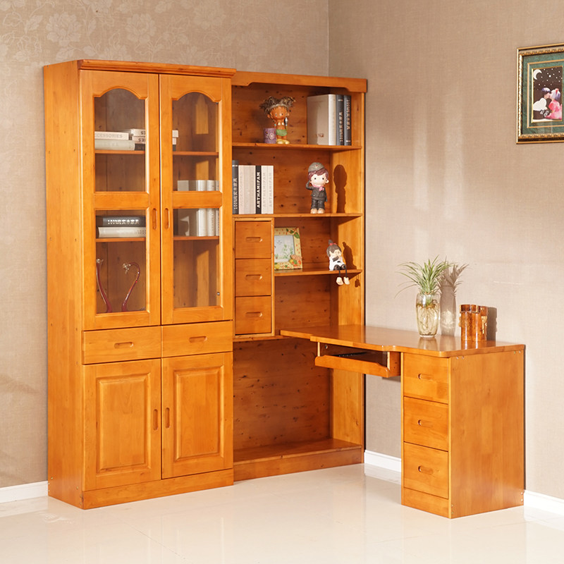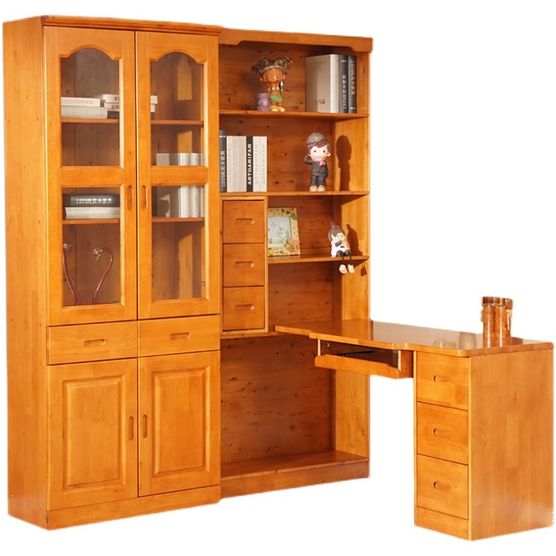 Full Solid Wood Corner Desk Computer Desk Chamberwood With Bookcase Two Doors Three-door Bookcase Combo