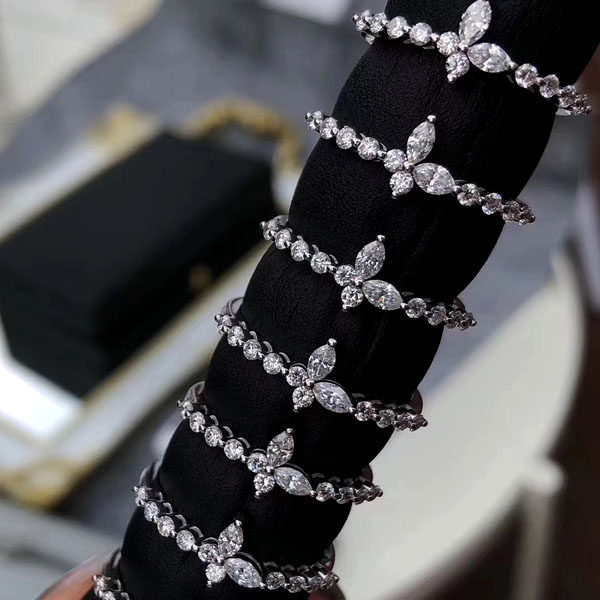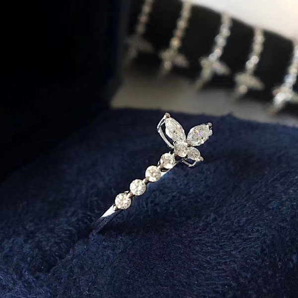 Huilai Jewelry 18K Platinum Butterfly-shaped Group Ring Diamond Ring Fashion Temperament Marquise Diamond Women's Ring
