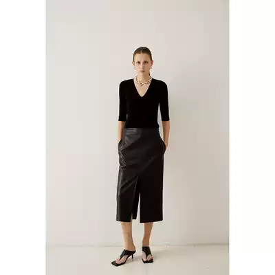Imported Dingclass guest supply luxury brand environmental protection leather_delicate sheepskin texture front and rear slit and simple wind slim skirt