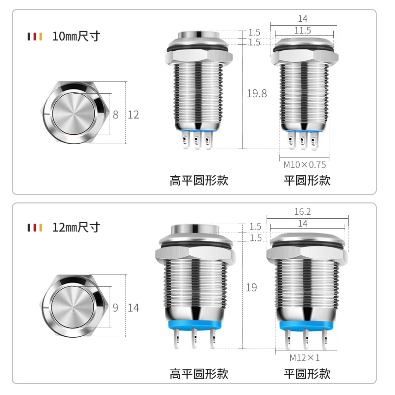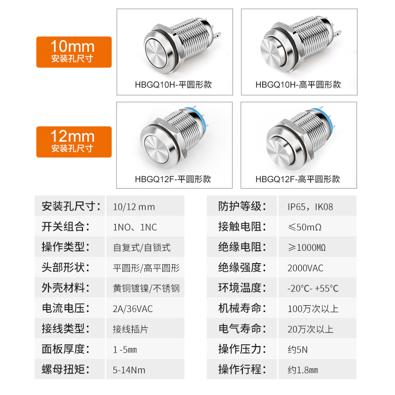 10MM reset flat head 10MM reset high head 10MM self-locking flat head 10MM self-locking high head 12MM reset flat head 12MM reset high head
