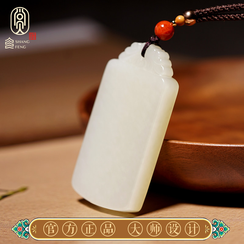 Hetian jade safe and sound brand pendant safe Ruyi square brand jade pendant white jade jade pendant necklace pendant pendant gift