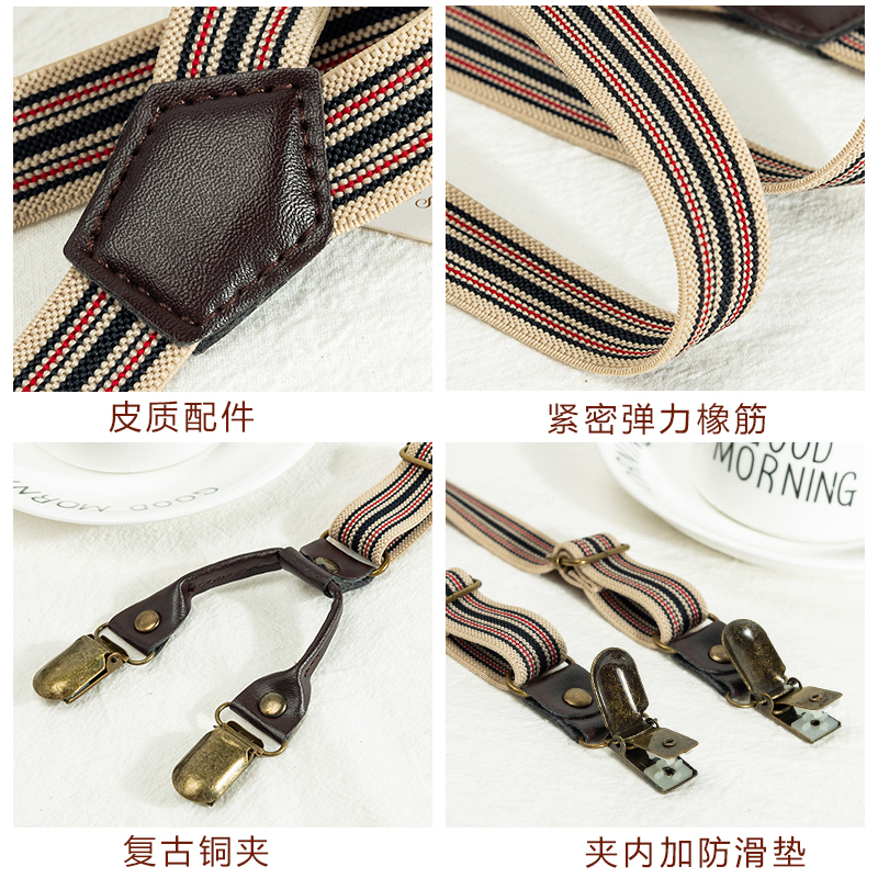 Retro British suspenders for men and women striped wild elastic baby bag adult Y-shaped non-slip trousers groomsmen suspenders