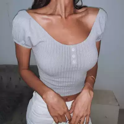 ITSNIKAR white T-shirt Women summer 2021 New French vintage hollow knitted backless short sleeve top