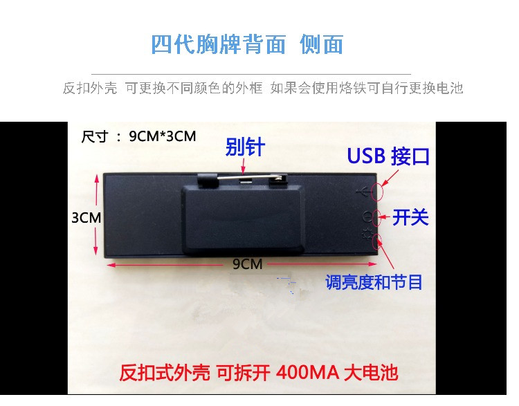 Four generations of large battery LED badge charging word generation driver card custom worker number plate KTV bar attendant brooch