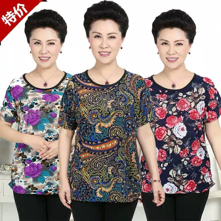 Middle-aged and elderly summer clothes, mother clothes, short-sleeved T-shirts, night market stalls, street stalls, wholesale women's clothing, factory direct sales
