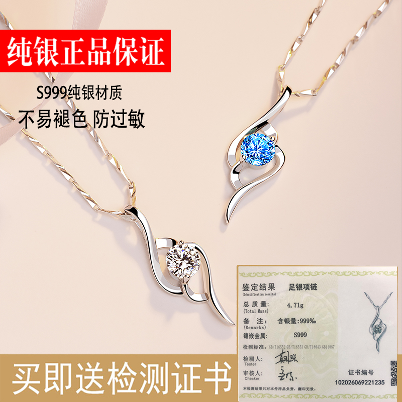 999 sterling silver necklace female collarbone chain high-end simple temperament light luxury pendant jewelry send girlfriend birthday gift