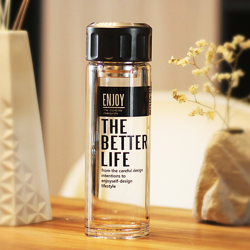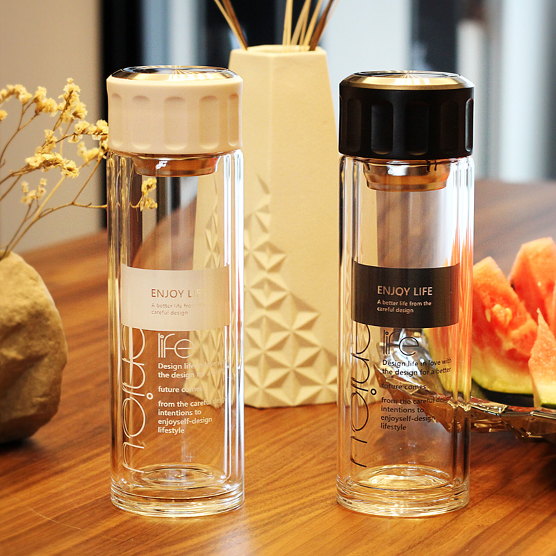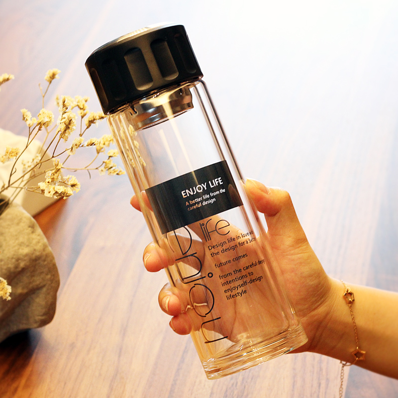 Korean version double layer thickened heat resistant glass cup water cup male and female portable filter tea cup with hand on-board lemon cup