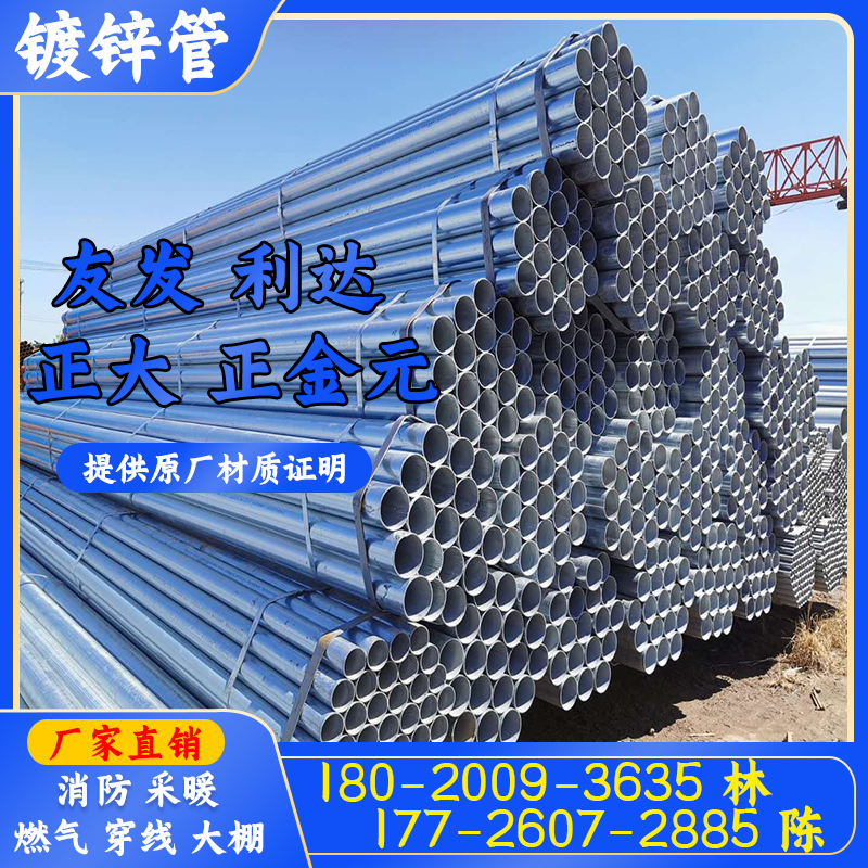 Galvanized round pipe galvanized pipe fire hot-dip galvanized steel pipe National standard galvanized pipe Greenhouse pipe Gas pipe