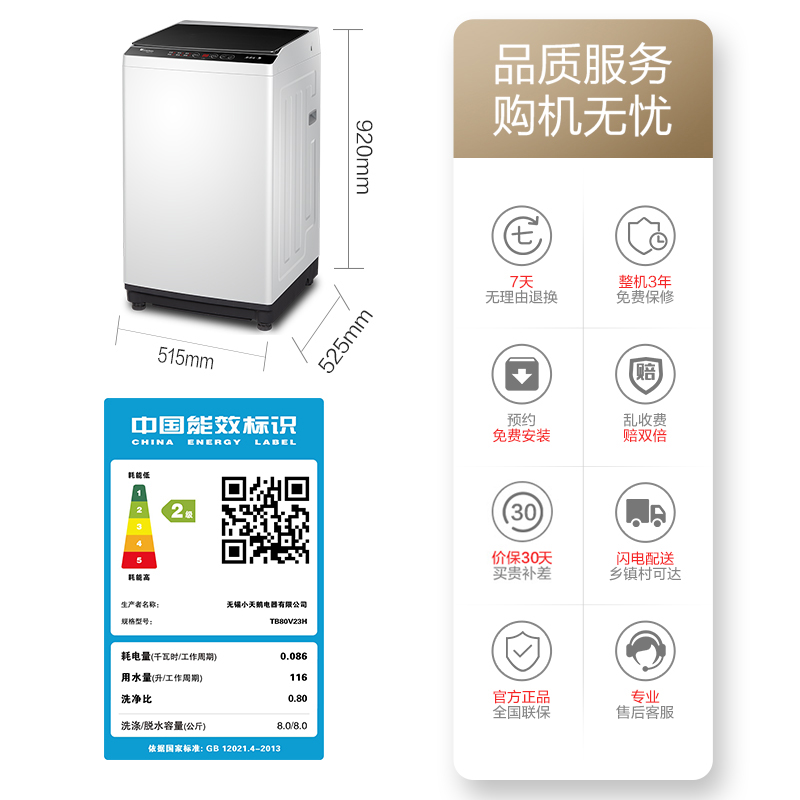 Small Swan Washing Machine Fully Automatic Home Wave Wheel Small 8kg kg Large capacity Eluting Integral TB80V23H