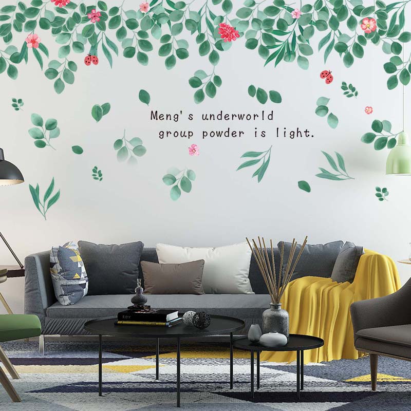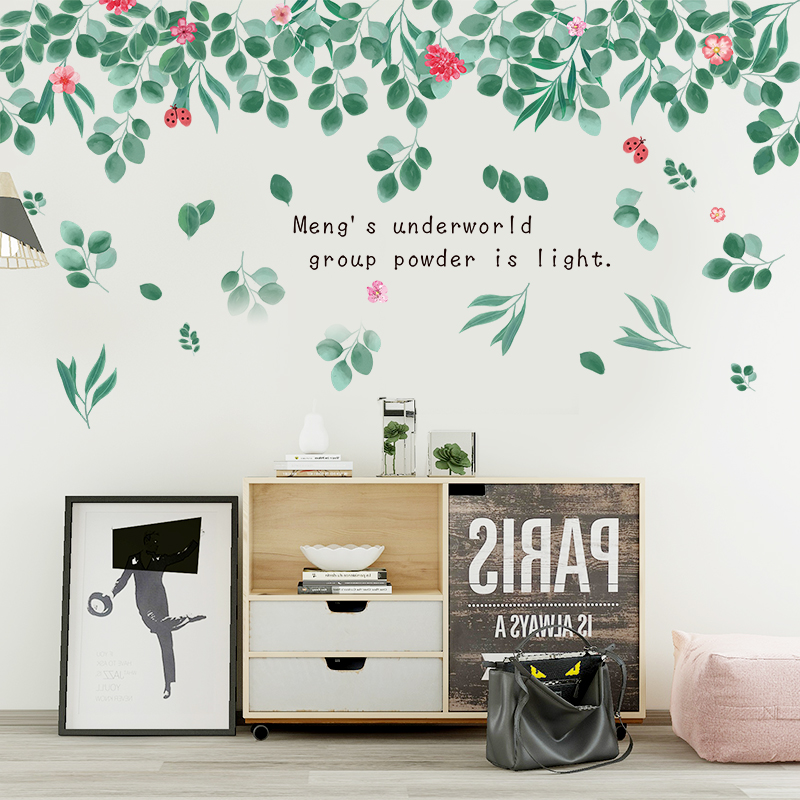 Romantic Bedroom Bedside Garden Wind Decoration Fresh Green Leafy Wall Stickler drawing room Sofa TV Background Wall Stickers