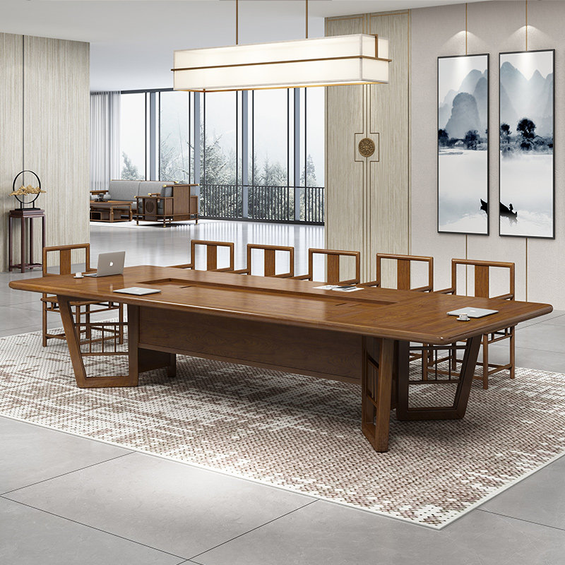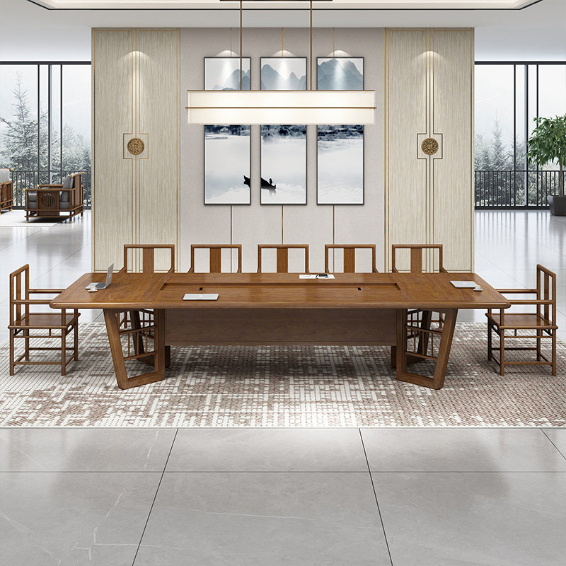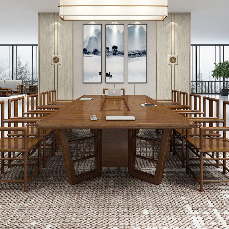 Junling new Chinese conference table office furniture long reception training table simple negotiation table and chairs solid wood