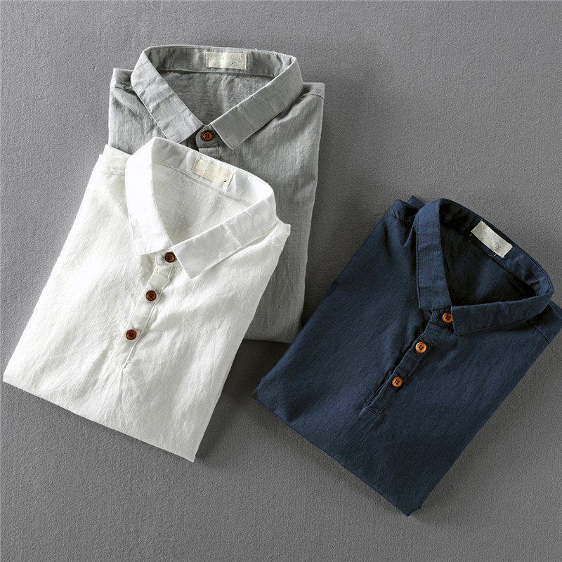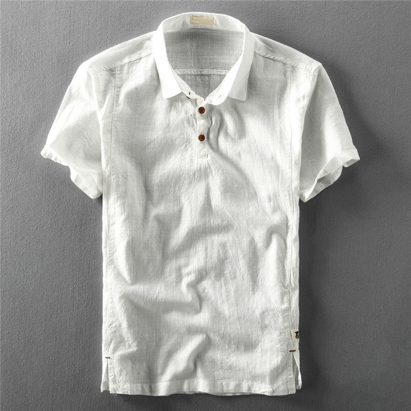 GOOMIL LEE summer linen cotton flap short sleeve T-shirt male loose trend POLO shirt ice silk half sleeve shirt