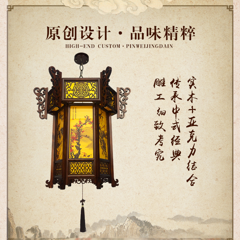 Chinese antique outdoor acrylic classical temple villa club dining room hotel solid wood art palace lantern lantern chandelier
