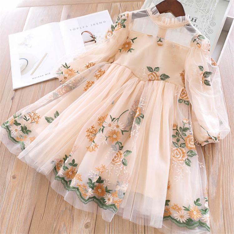 Girl Spring Dress Ocean Dress 2022 New Children Suit Summer Long Sleeve Dress Han Royalty Little Girl Princess Dress
