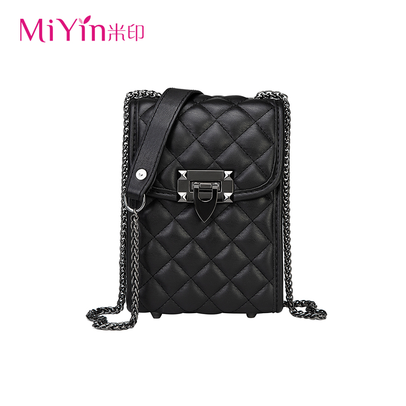 Miyin 2022 New Small Fragrance Style Lingge Small Bag Messenger Bag Soft Leather Women's Bag Casual Versatile Vertical Mobile Phone Bag Women