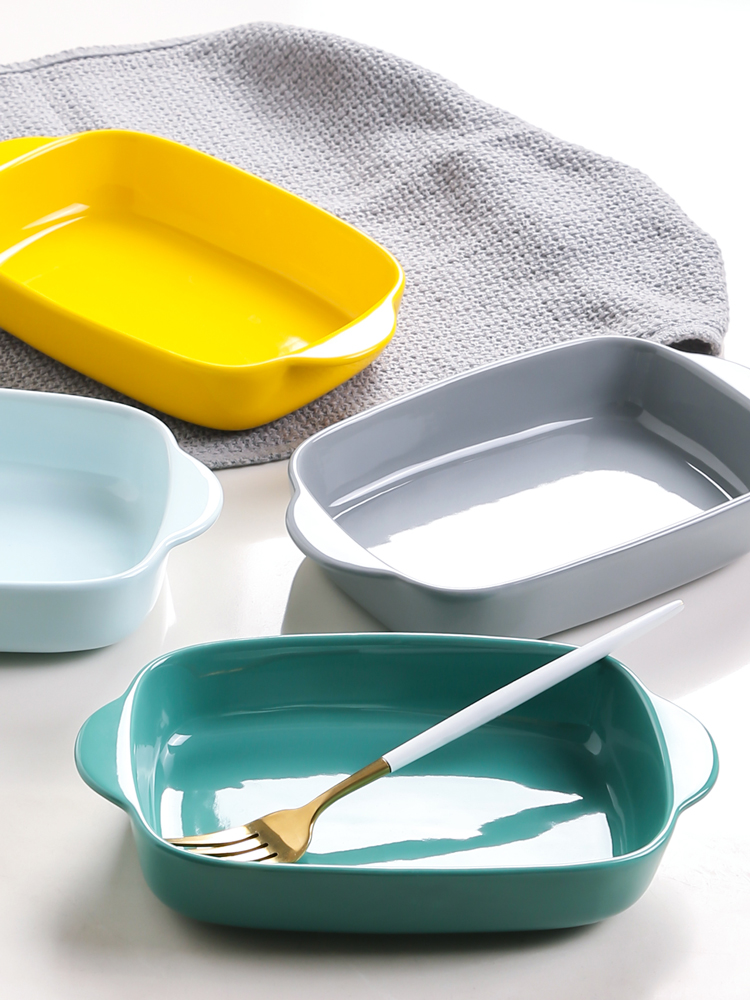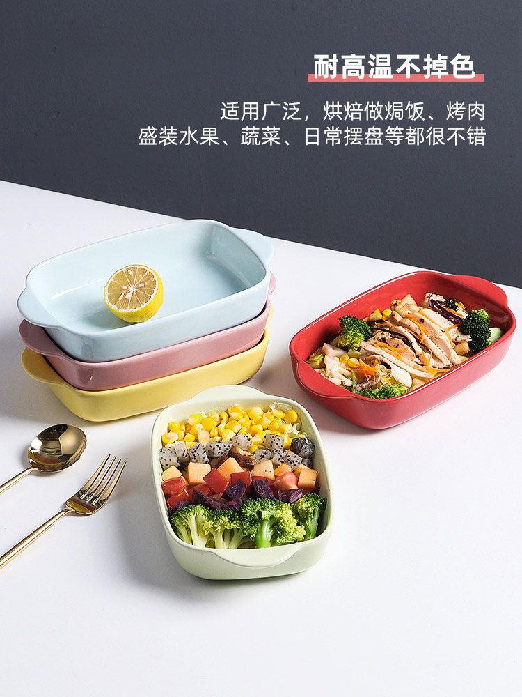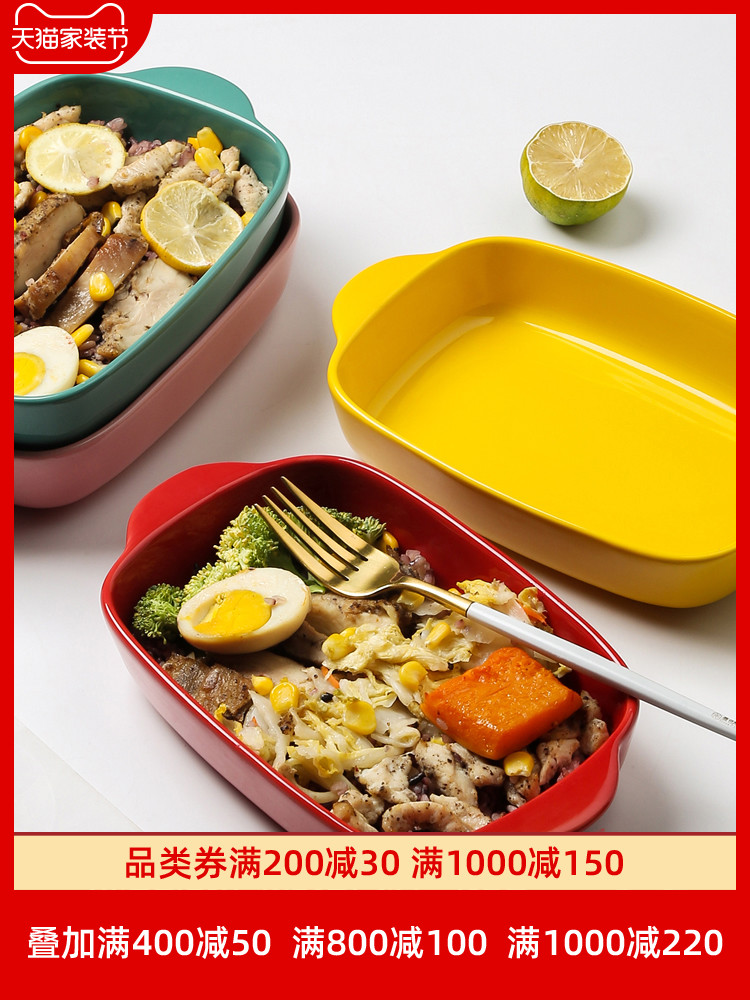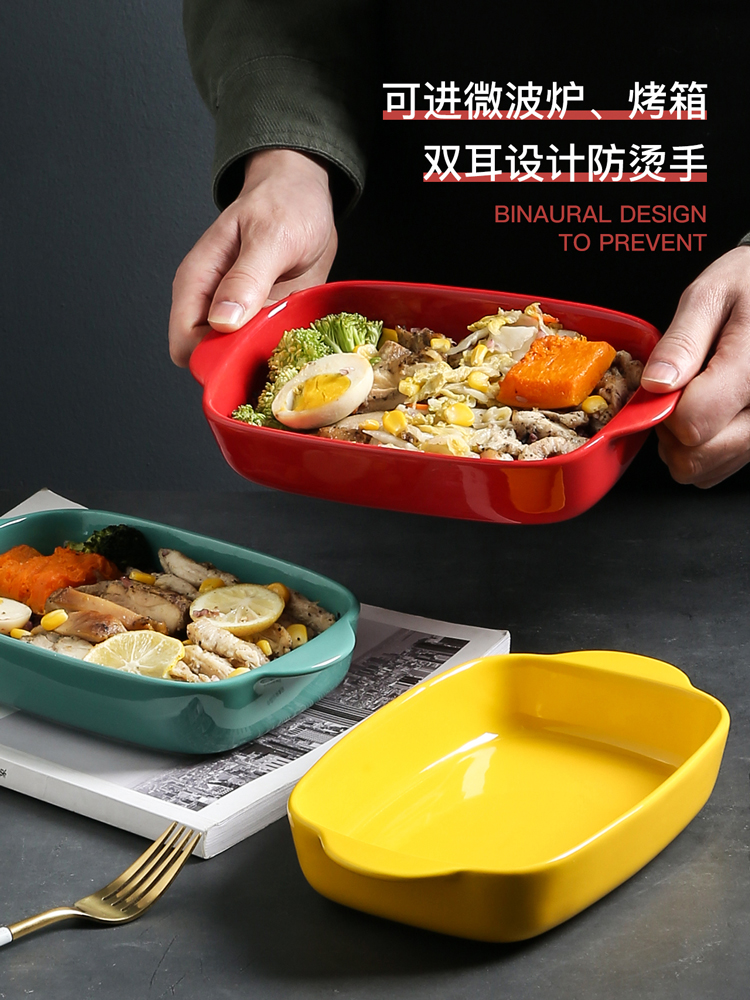 Cheese baked rice plate ceramic baking tray Baking binaural plate plate microwave oven special tableware home baking bowl