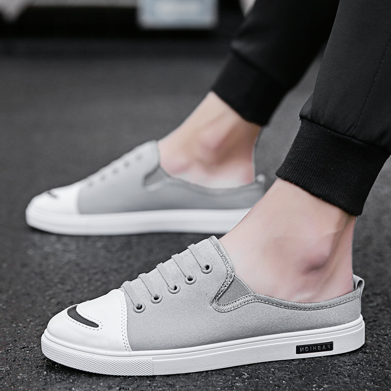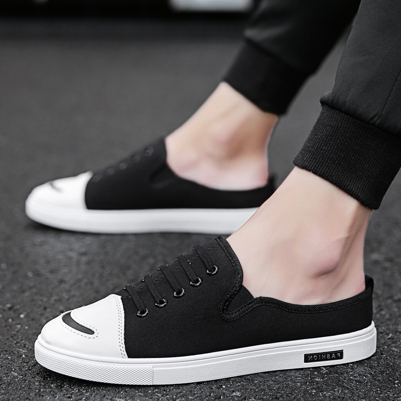 Men's shoes Summer breathable One foot pedal trend Leisure sloth man Bean Tide Shoes Baotou No Heel Canvas Semi-Slipper Male