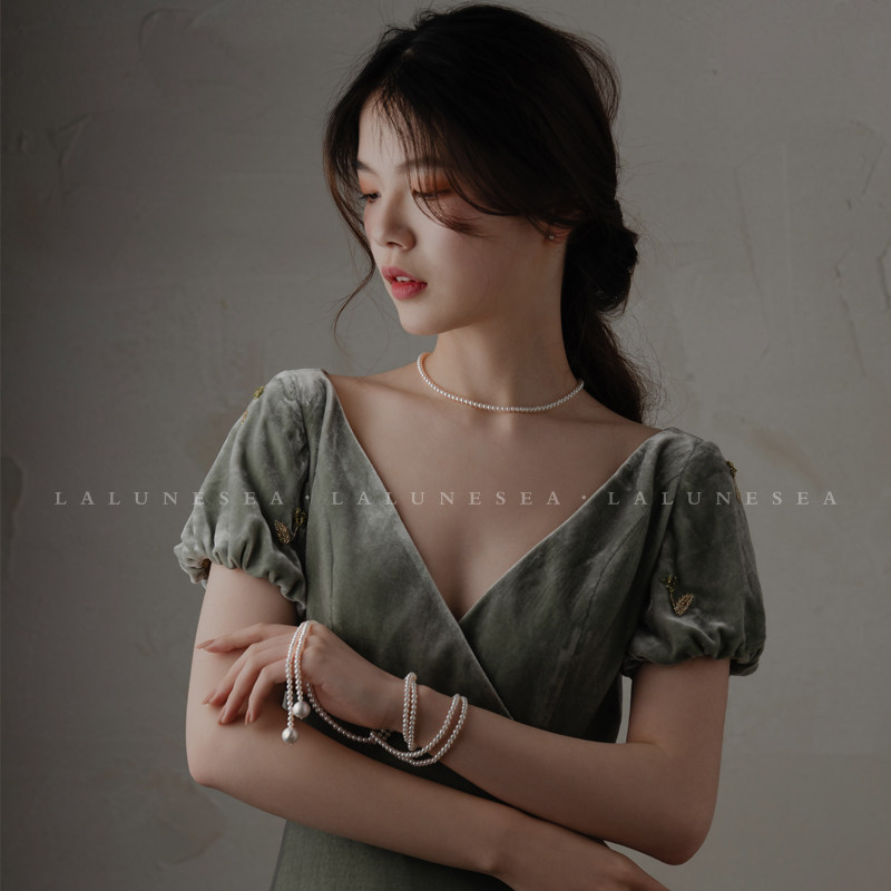 The Moon is the sea · heavy naked bead chain Aurora freshwater baby Pearl rare high-grade light luxury elegant fairy necklace
